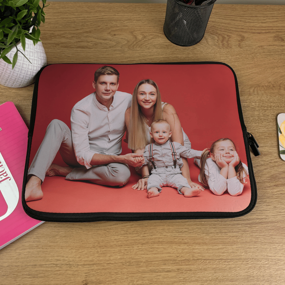 Transform your laptop into a stylish statement piece with our custom laptop sleeves! Made from smooth neoprene material, these sleeves are lightweight, water-resistant, and feature foam padding to protect your device from bumps and scratches. Each sleeve offers a solid black backing and a fully customisable front, perfect for showcasing your favourite photos, quotes, or unique designs.