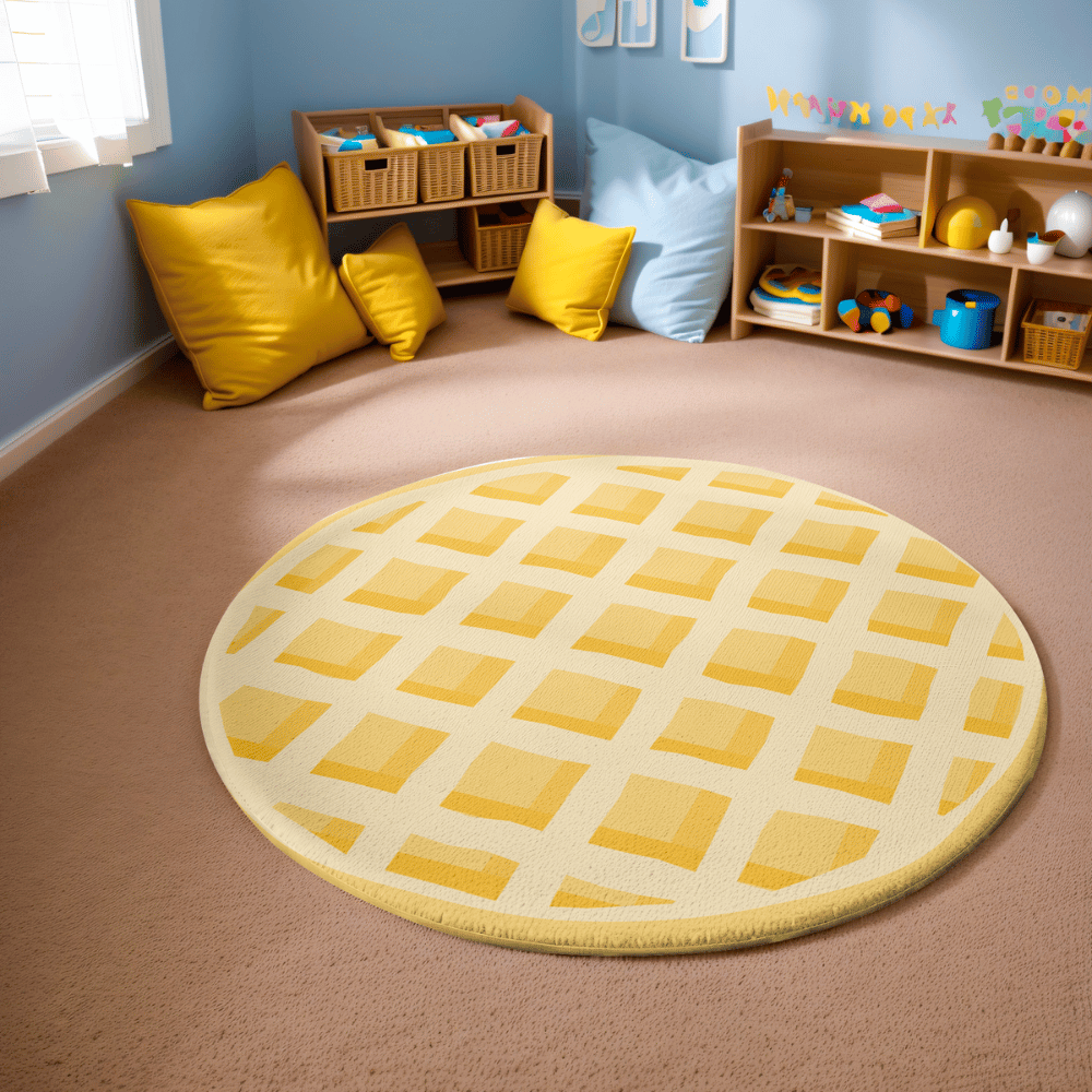 Part of our food rugs collection, its high-quality design ensures long-lasting use. Perfect for those who love cool rug designs, this round waffle-shaped rug is a must-have for a cozy and stylish home!